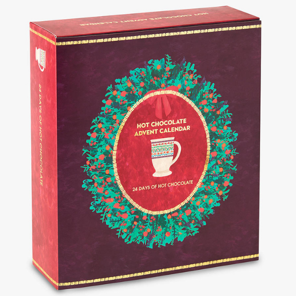 A delightful hot chocolate advent calendar of luxury Italian flavoured hot chocolate drinks to enjoy every day in the countdown to Christmas Day. Some of the delicious flavours include, caramel, coffee, chilli, mint, coconut, hazelnut and so much more.