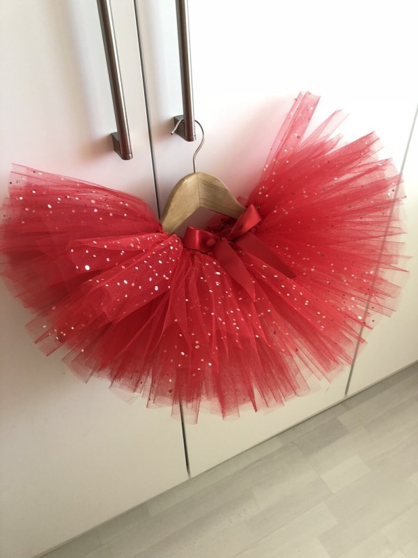 This tutu is handmade to order in a short length (just above the knee) using 3 layers of Sparkle tulle secured on elastic to ensure comfort. They have a ribbon tie to the front. Each one can be made to your custom measurements and you can pick from a range of colours including red, burgundy, grey and black. Available from 0-6 months and up.