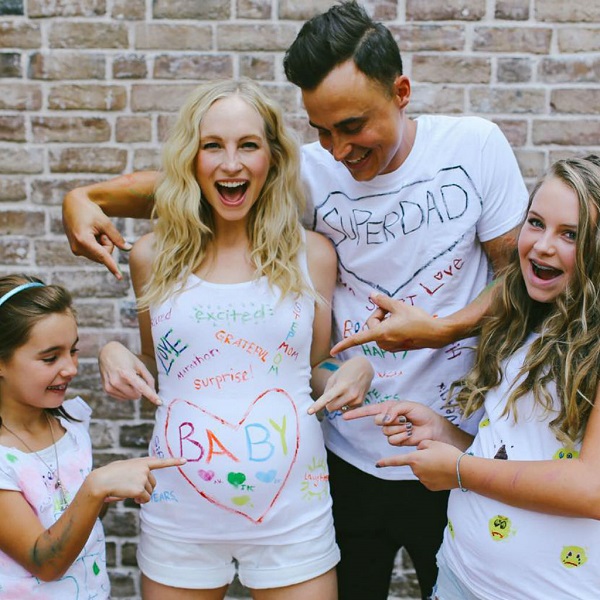 Joined by Joe’s two daughters, Ava and Elise, Candice and Joe created special ‘Super Dad’ and ‘Baby’ T-shirts for the family, posting a photo of their creations to Instagram.