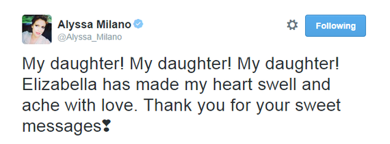 Alyssa hasn’t been quiet about how over the moon she is about the new addition to her family, last week she thanked fans for their good wishes on Twitter, writing: