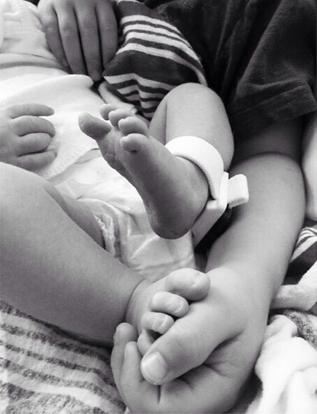 Shared on her Instagram, Alyssa captioned the picture: "Milo meets his baby sister for the first time.”