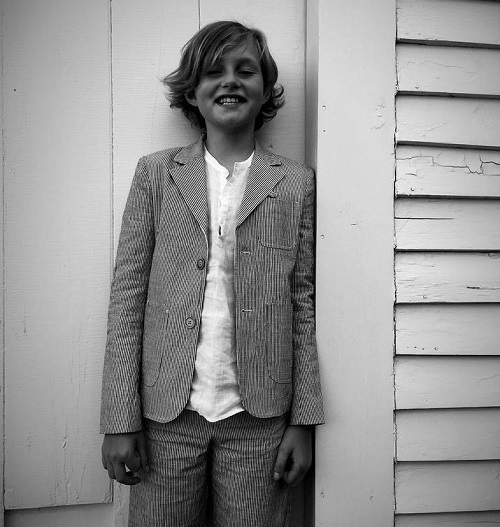 In the first shot, eldest son Milo – her child from her first marriage to Royston Langdon – is all grown up as he poses in a suit, smiling for the camera.