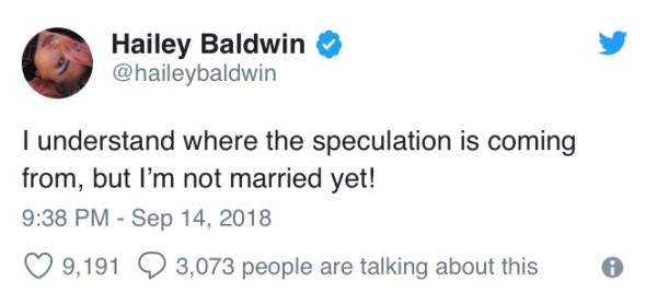 However, the truth of these statements were questioned when Hailey commented on reports of the marriage.
