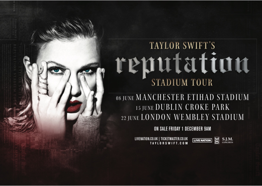 The country-turned-pop starlet is taking her Reputation tour to the Emerald Isle.
