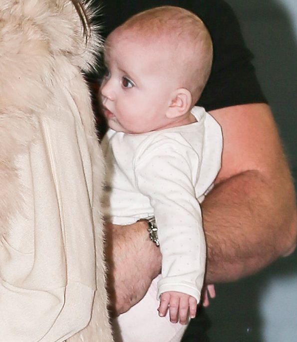 Clutching her dad's T-shirt as they made their way to the car, Bunny looked cute as a button as she snuggled up against her dad.