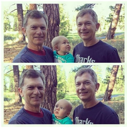A user uploaded a fantastic image to the social networking site, explaining in the caption: “My friend’s kid met his grandfather’s twin for the first time today.”