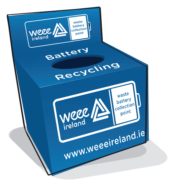 Since September 2008, all shops that sell batteries must take back your waste batteries for free recycling, regardless of whether you purchase anything in their store. This is part of a European Directive which came into force in 2008, to encourage battery recycling across the EU. WEEE Ireland is an approved recycling scheme that facilitates and organises battery collection and recycling.
