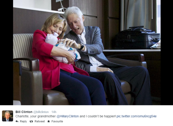 Bill, the very proud grandfather, shared a message to baby Charlotte on his Twitter page, writing: “Charlotte, your grandmother @HillaryClinton and I couldn’t be happier.”