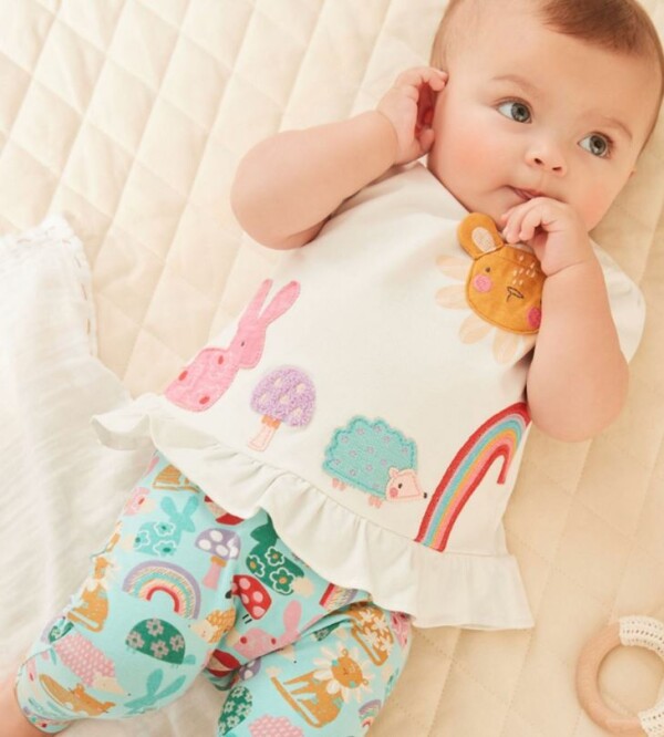 This fun set features mix and match tops and leggings with fun prints and character appliqué detailing. Made from soft cotton with added stretch for comfort. Machine washable. T-shirt, Leggings, T-shirt and Leggings 95% Cotton, 5% Elastane