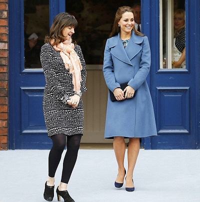The Duchess was really showing as she stepped out in a Seraphine floral print dress, her baby bump buttoned up under a beautiful blue overcoat.