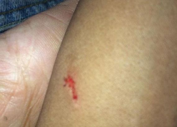 “So they handcuffed her and threw her roughly into the back of the cop car until they could figure out who she was. In the process of handcuffing her, they cut her wrist [main image], which was truly NOT COOL!!!”