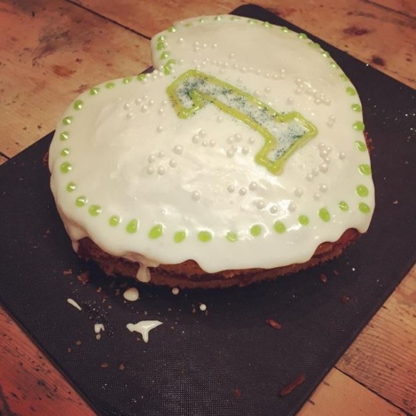 Fearne, who is also mum to three-year-old Rex, gave us all a little insight into the upcoming festivities by sharing a picture of the birthday cake – a pretty awesome looking heart-shaped cake, we have to say!
