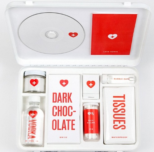 The brain child of New York graphic designer Melanie Chernock, who says, ‘I knew that I did not want to make a kit of sadness and wanted to approach the product with a sense of humor,’ the Love Hurts first aid kit is aimed to help when coping with a breakup. However, the kit not yet available, with Melanie noting 'If anyone is interested in producing it, please get in touch!'