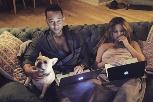 Chrissy, who is known for her down-to-earth demeanour, then offered fans and followers an insight into the post-party come-down by sharing a snap of her and her husband of three years sharing a blanket while glued to their respective laptops.