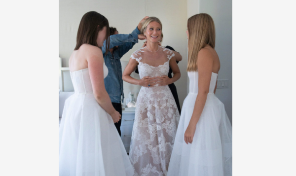 One of the most striking images is of course, her wedding gown, designed by Valentino Couture. We are absolutely floored by how beautiful Gwyneth looks, as well as her daughter in Monique Lhuillier.