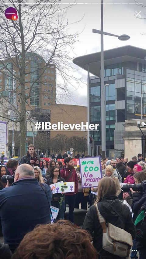 Good crowd, still building, at the Belfast rally against rape trials failing victims. #IBelieveHer pic.twitter.com/PAORnyVYDV