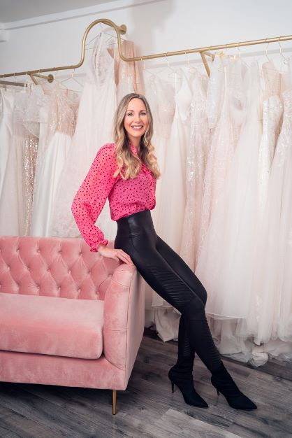 Having recently celebrated her first wedding anniversary with her second husband, Laura Erskine, 44-years of age, is also basking in the afterglow of reaching another significant milestone, one-year in business as owner of Spellbound Bridal Couture. The public relations consultant, who has worked in the parenting field for the last 12-years and in financial services marketing for the previous decade, took stock during the pandemic with a mission to find more ways to bring joy into her life.