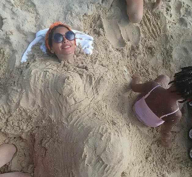 Perhaps Blue Ivy was just having a little fun in the sand with mum, or maybe there's something more to this!