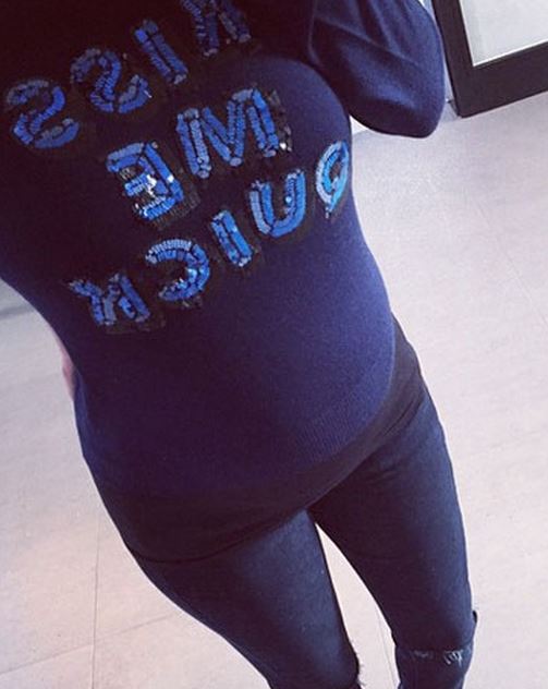 Dressed from head to toe in dark tones, the 26-year-old star was keen to show off her burgeoning bump beneath her cosy wool jumper, but it looks like fans think she was doing a little more than showcasing her gorgeous curves.