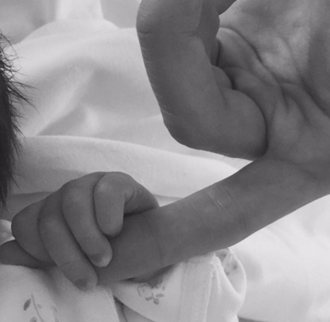 The tender black and white shot, which has clocked up thousands of likes since its upload last night, was accompanied by a sweet message which paid tribute to the couple's new arrival.