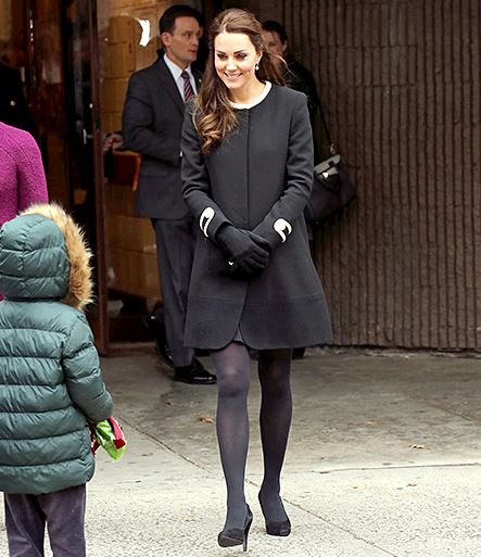 Dressed in a long black coat dress, gloves and heels, Kate, who is five months pregnant, was well prepared for the cold winter weather.