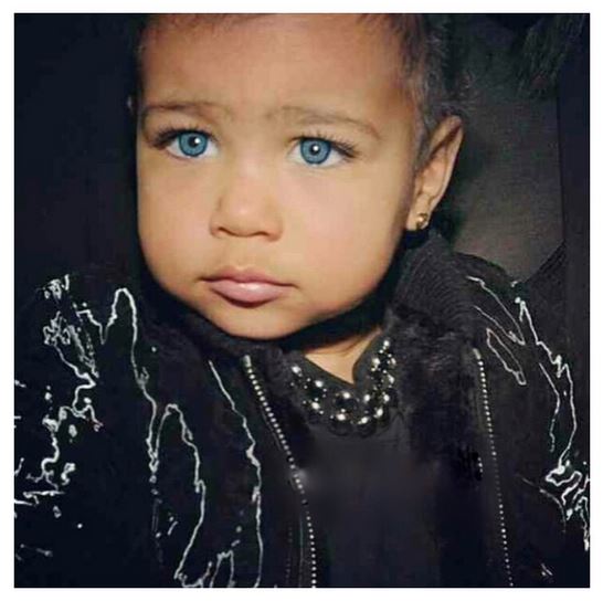 The mum-of-one Instagrammed a picture of her little girl with blue eyes, captioned “Baby Wolfie”. The picture was in reference to previous ‘wolf’ images posted of Kim and Kanye wearing blue contact lenses and fans were quick to presume Kim had fitted her daughter with her own pair.