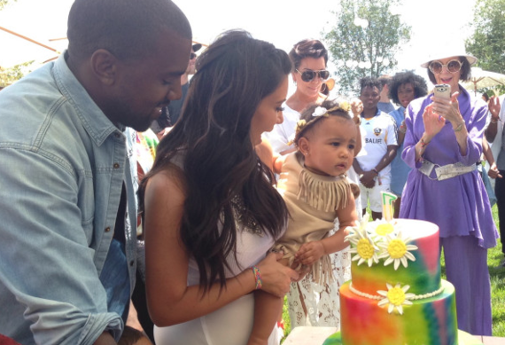 The snap shows little North being serenaded by both her mum, Kim and her dad, Kanye - who are standing beside North’s colourful birthday cake.