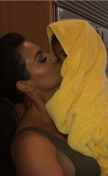 North looks snug as a bug all wrapped in a big yellow towel following her dip in the pool, and we’re sure that Kanye is beaming with pride from behind the camera. Well done, Nori.