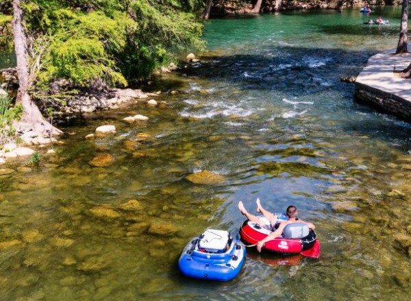 Tubing is a common pastime on Canyon Lake. Throughout the summer, numerous people travel to New Braunfels and San Marcos to drift along the Comal and Guadalupe rivers. Both New Braunfels and San Marcos can become rather crowded on weekends as individuals come from Austin and San Antonio.