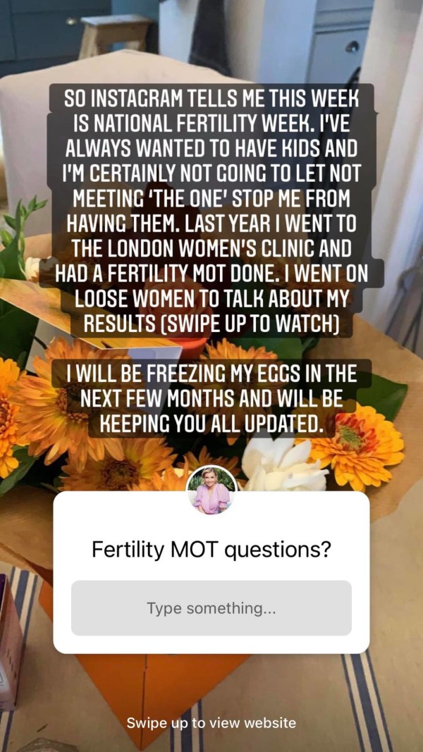 “Last year I went to the London women’s clinic and had a fertility MOT done,” Amy explained, adding, “I will be freezing my eggs in the next few months and will be keeping you all updated”.