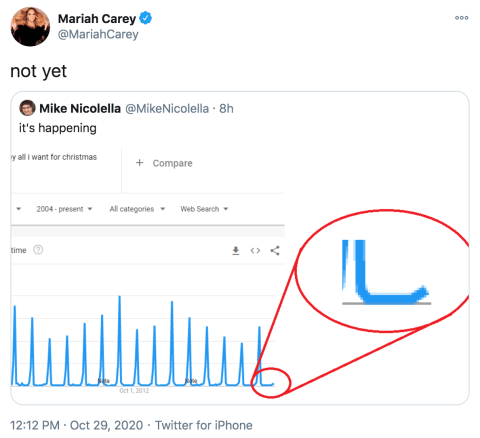 “MARIAH CAREY HAS BREACHED CONTAINMENT REPEAT SHE HAS BREACHED CONTAINMENT,” one fan wrote on Twitter. “PROTOCOL WARM CHRISTMAS WELCOME TO BE INITIATED, ALL CITIZENS IN MARIAH CAREYS LOCATION ARE TO BE CONSIDERED LOST CAUSES. NUCLEAR DEPLOYMENT IS TO COMMENCE”