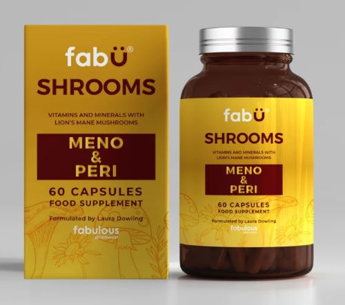 Formulated by Laura Dowling, Fabulous Pharmacist, fabÜ SHROOMS MENO & PERI is unique supplement with seven active ingredients. It is based on the concentrated extract of the edible mushroom Lion's Mane, blended with Vitamin D, Vitamin K2, Vitamin B6, Vitamin B12 and Chromium tailored specifically to support a woman's journey through perimenopause and menopause. Buy here.