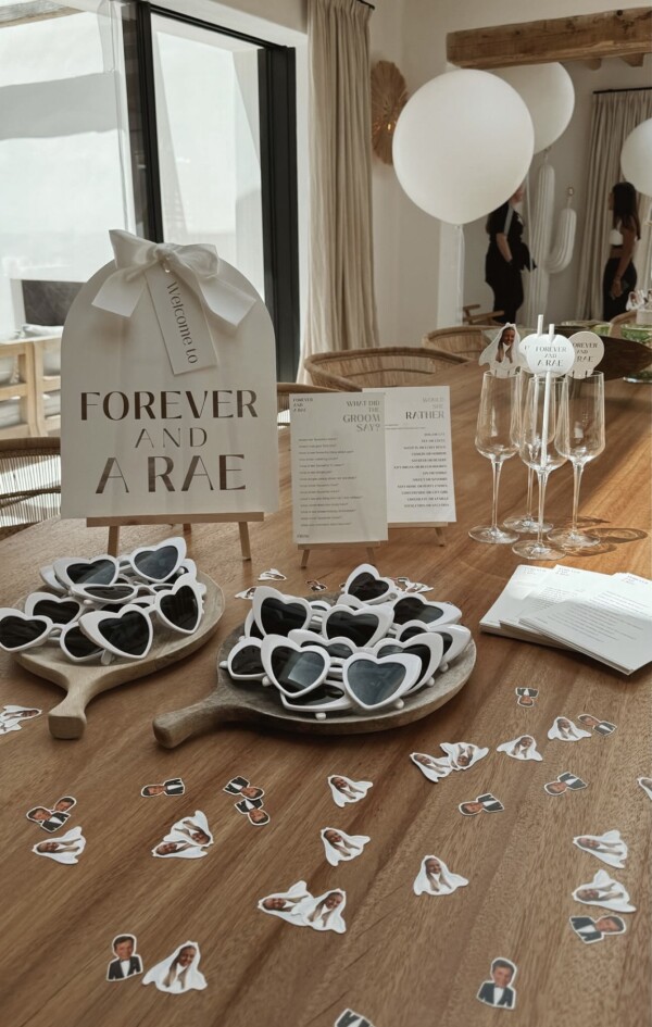 “Welcome to Forever and A Rae,” the table placard reads, incorporating Zoe’s soon-to-be new surname.