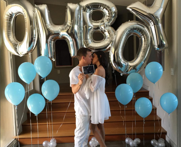 Tenderly embracing his wife Bryiana while clutching a sonogram of his unborn child, Rob revealed the sex of his baby with the help of some strategically placed balloons,