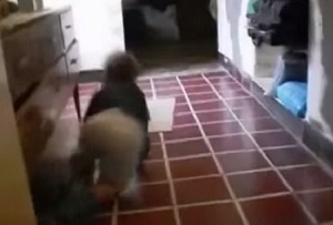 The mum recently captured the mischievous creature on camera while shooting a video of her little boy. While the camera focuses in on the tot crawling along the kitchen floor, what appears to be a tiny little person can be seen dashing behind a table in the background.