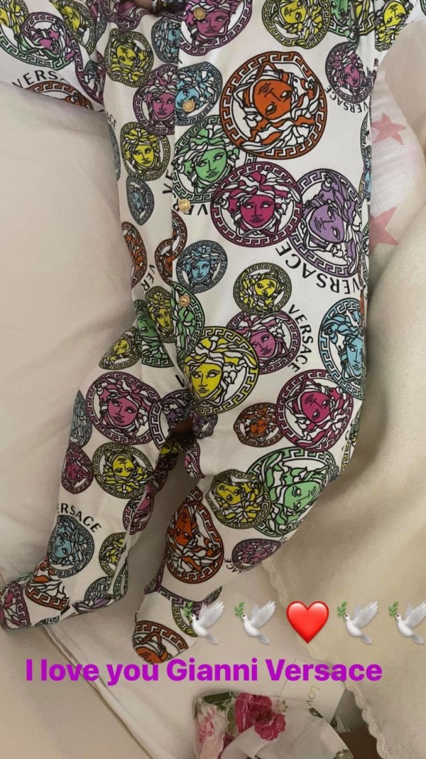 Keeping her little one largely out of the limelight, Naomi shared a sweet snap of her little girl wearing an absolutely adorable Versace babygrow, with her face hidden just out of view.