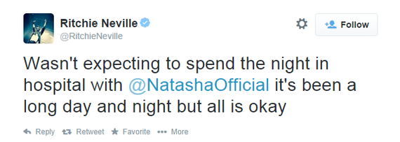 Both have commented on Twitter about their hospital visit, with Natasha thanking the staff at South Mead Hospital for their help.