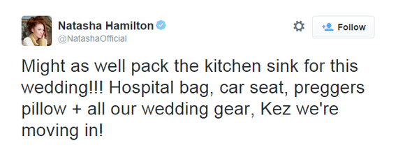 Natasha joked on Twitter before the wedding about how much stuff she had to bring with her, saying she was planning to move in with Kerry.