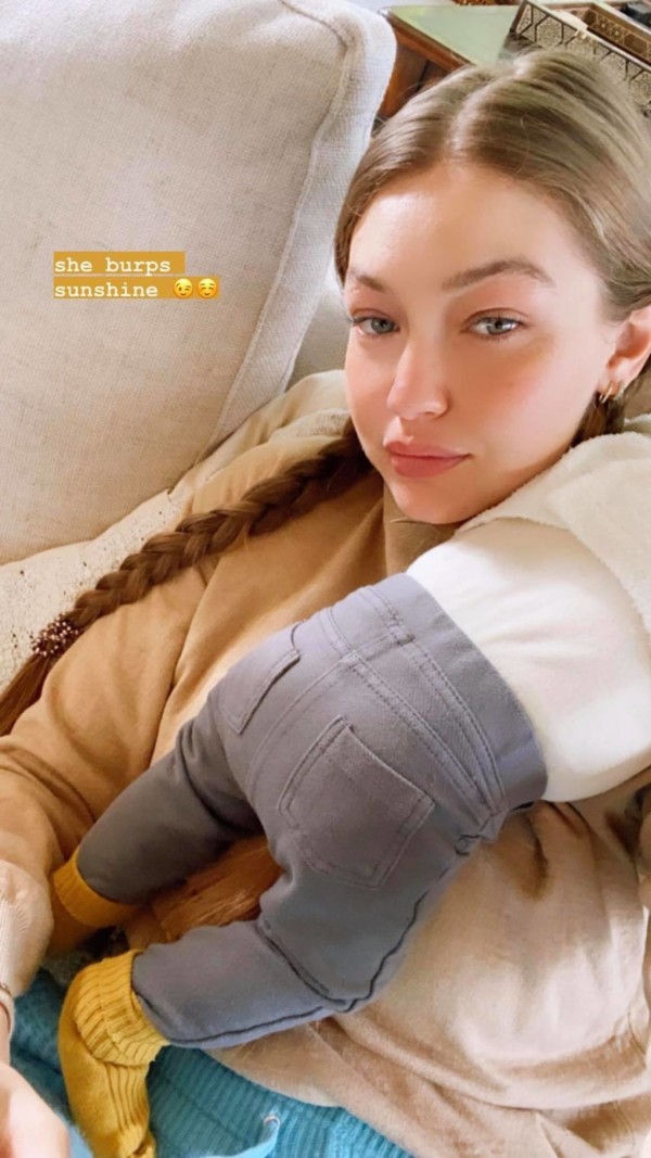 "She burps sunshine," Gigi adoringly wrote, followed by a winky-face emoji.