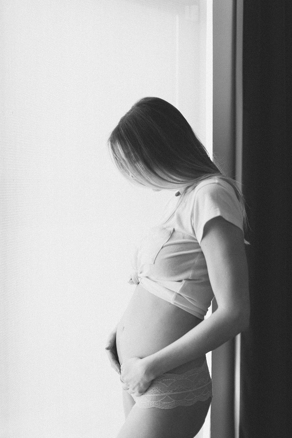 “Oh, hey! Just standing by the window in my underwear, with a BABY in my belly!” she wrote.