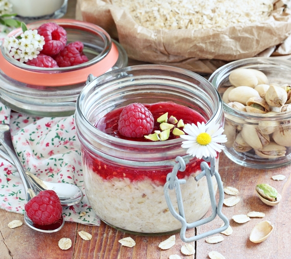 1. Overnight oats with raspberry and pistachio