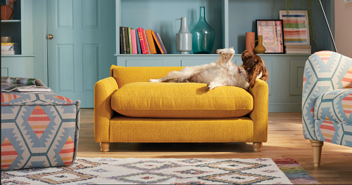 Why not treat your pet to their own sofa this Christmas? The best part is that you can even get human sofas to match! DFS Hallaton medium pet sofa available in Antique Gold or Coral velvet, €539 www.dfs.ie