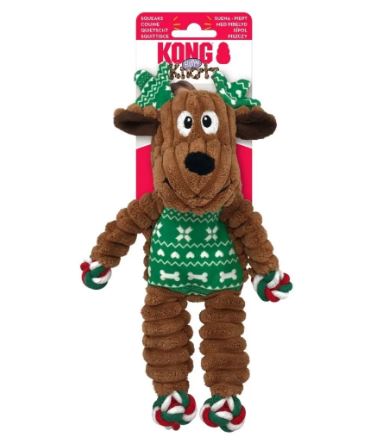 An adorable addition to your dog's toybox, the Kong Christmas Floppy Knots Reindeer is cute, cuddly and great for both fetching and snuggling - perfect for a dog who loves to cause trouble during the day but curl up and nest in a cosy bed in the evening. KONG Floppy Knots are the newest arrival in the Knots tribe with a cheerful, floppy design allowing for great thrashing fun. The realistic feel of the internal knotted rope satisfies natural instincts while the varied textures and squeakers gear up for play. With minimal stuffing for less mess get ready for entertaining games and grins. Available at Pet Stop in-store and online