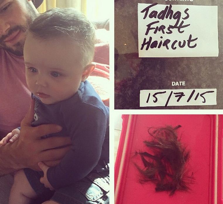 The Irish-born star then went on to hashtag the image with the phrases 'Five months old, 'Tadhg' and 'Baby's first haircut.'
