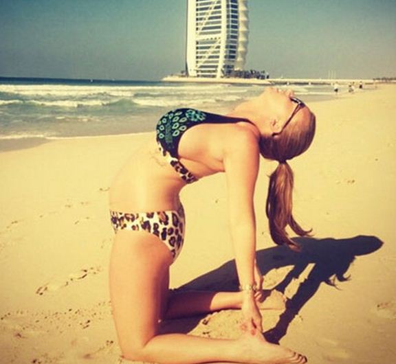 This famous mum-to-be took to Instagram to share some very impressive shots of her flexibility while on holiday in Dubai and she's definitely the envy of the less flexible amongst us!