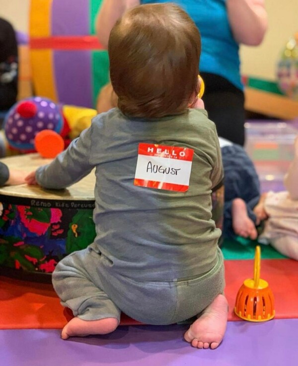 The next snap is a solo shot of August from behind, as he enjoys himself at some sort of play group. From this photo we can see that little Augie is taking after his auntie Beatrice with a lovely head of golden blonde hair.