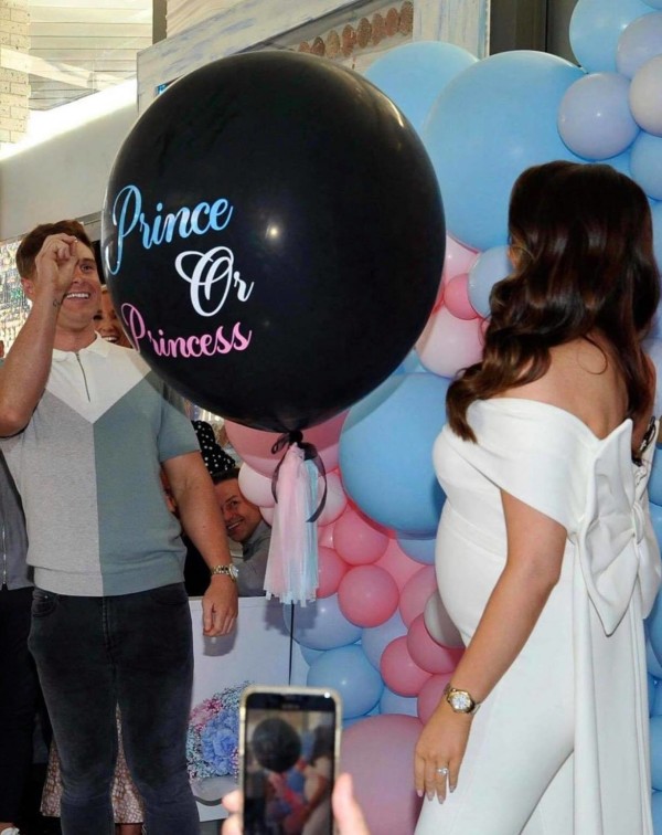 When the moment came for the happy couple to make the big reveal, the two stood in front of a blue and pink balloon wall, with a giant black balloon out in front, with the words ‘Prince or Princess’ emblazoned across it.