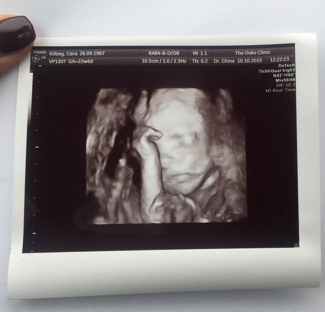 Six months after suffering a miscarriage, TV star Cara Kilbey has introduced her baby to the world with an adorable 3D scan picture.
