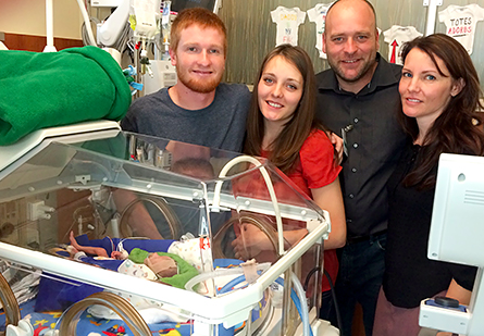 Baby Huck was born on 29th October and weighed only 2lbs 1oz and is remaining in hospital for now, six weeks after his birth.
