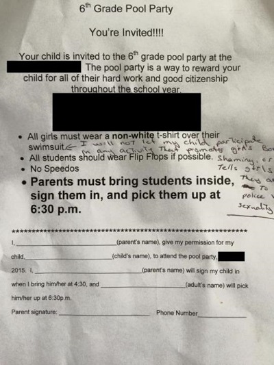 Jennifer Smith has publicly blasted her daughter’s school, Rhoades Elementary in Indiana, over their dress code rules for a sixth grade pool party that her daughter was attending.
